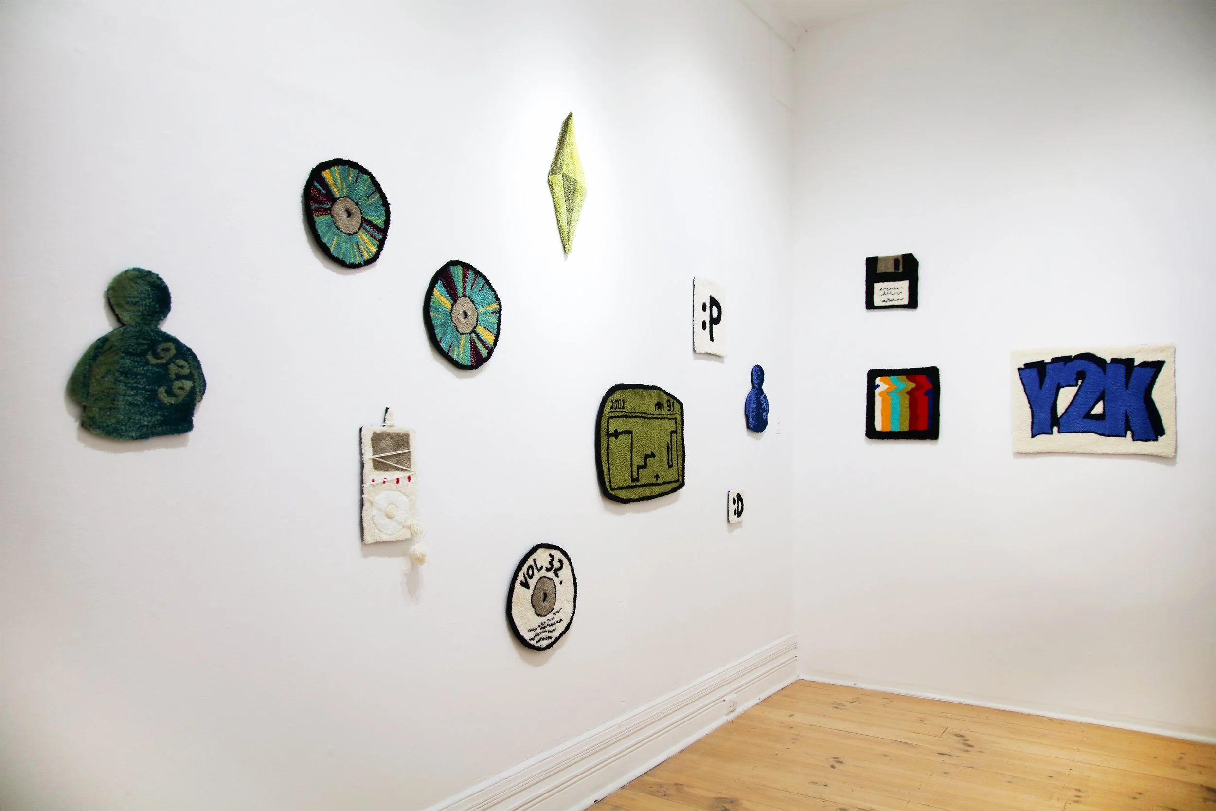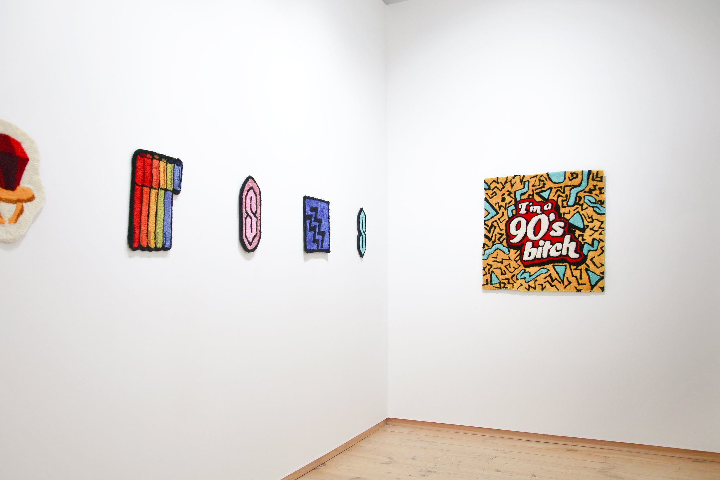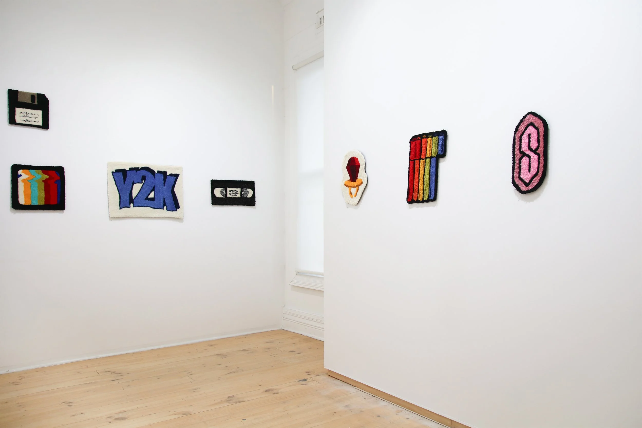 Nostalgic Threads celebrates the visual iconography that defined her generation, here Gala is showcasing a collection of hand tufted wall rugs, turning recognisable symbols into tangible pieces of art. It’s a journey through the depths of the 90s and 00s technology boom from VHS to iPods, from lollipop rings to emojis. She uses bold colours, text and painterly techniques to break the traditional bounds of rug making and doing so, is attempting to make these memories tangible again and find the comfort in the nostalgic.
